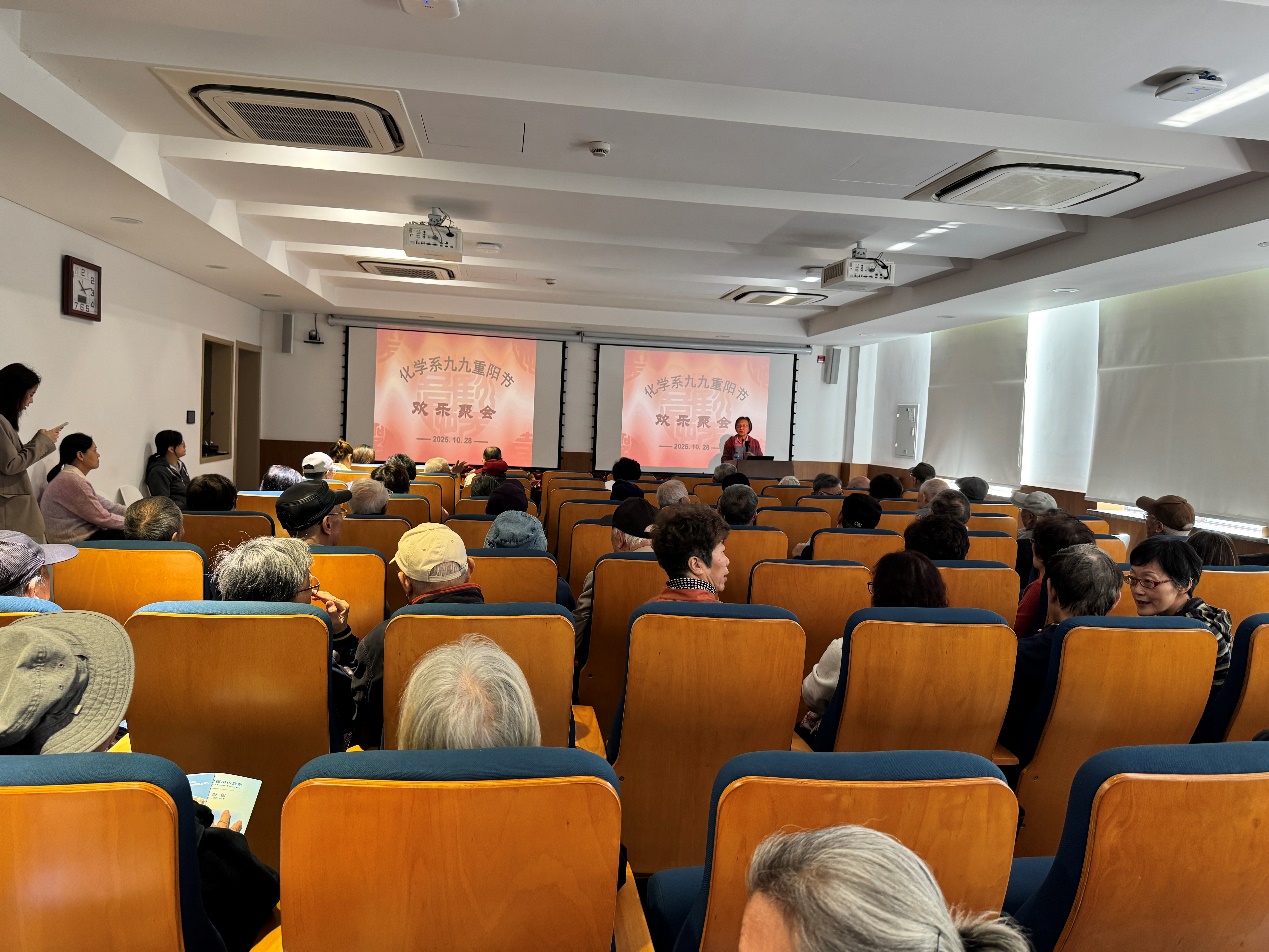 金秋送爽,丹桂飘香。2025年10月28日上午,化学系于邯郸路校区化学楼举办重阳节敬老活动,七十余位退休老同志欢聚一堂,在欢声笑语中共庆佳节。化学系分党委书记马蔚纯、副主任王文宁、分党委副书记秦枫,特邀浦东新区养老集团副总裁黄茵茵、曹路养护院副院长潘燕敏,以及系办公室老师们出席活动,向退休教师致以节日的美好祝福与问候。