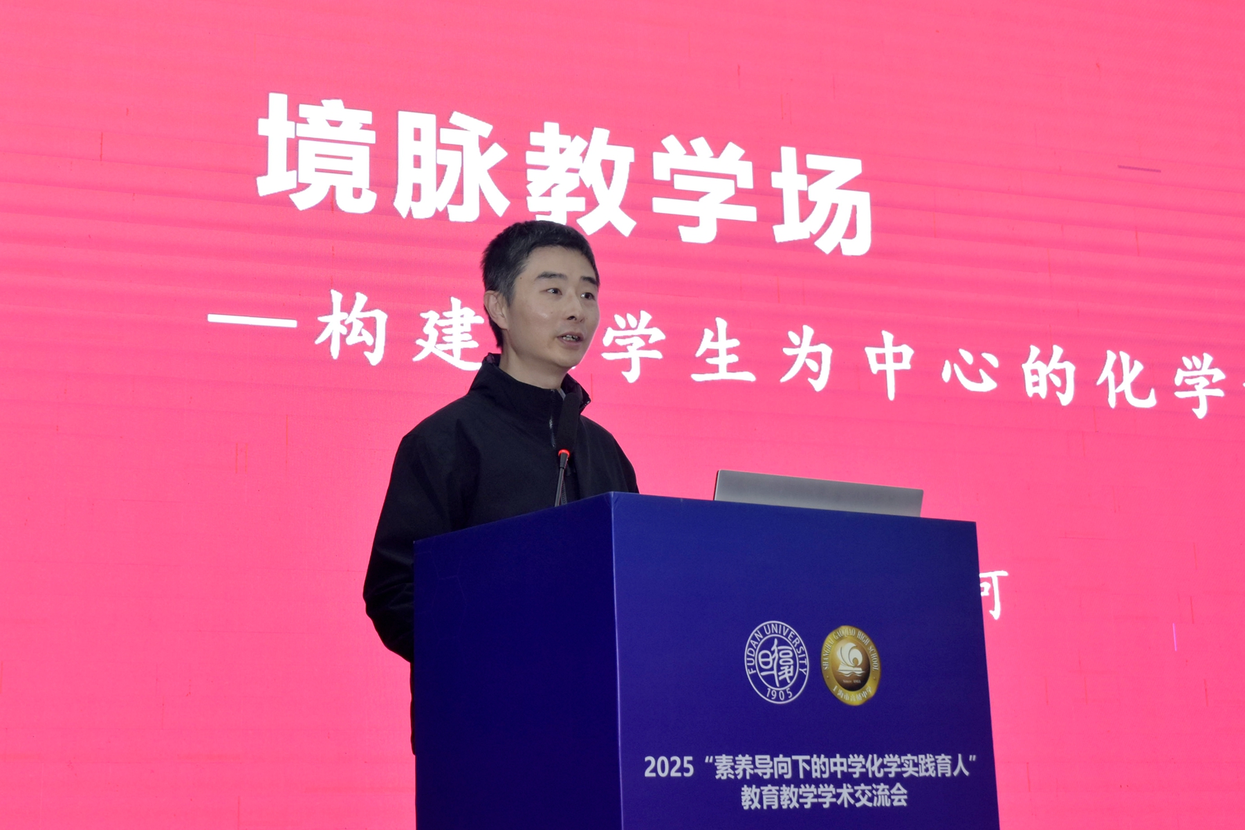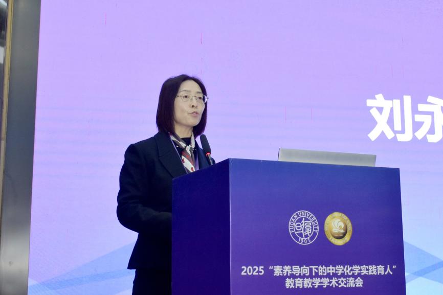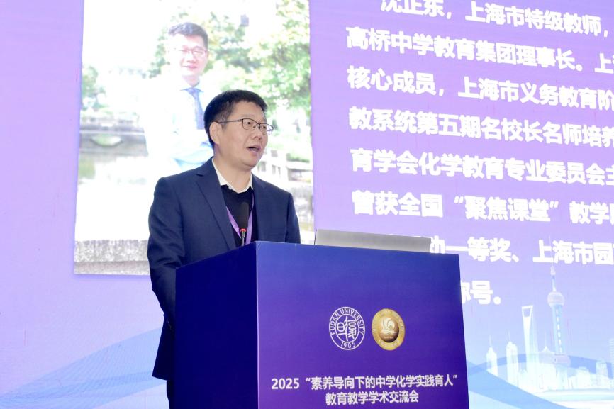 2025“素养导向下的中学化学实践育人”教育教学学术交流会开幕式由复旦大学化学系刘永梅副教授主持,上海市高桥中学沈正东校长、复旦大学化学系党委书记马蔚纯、上海市教师教育学院党委书记周增为以及中国科学院院士、复旦大学化学系麻生明教授分别致辞。