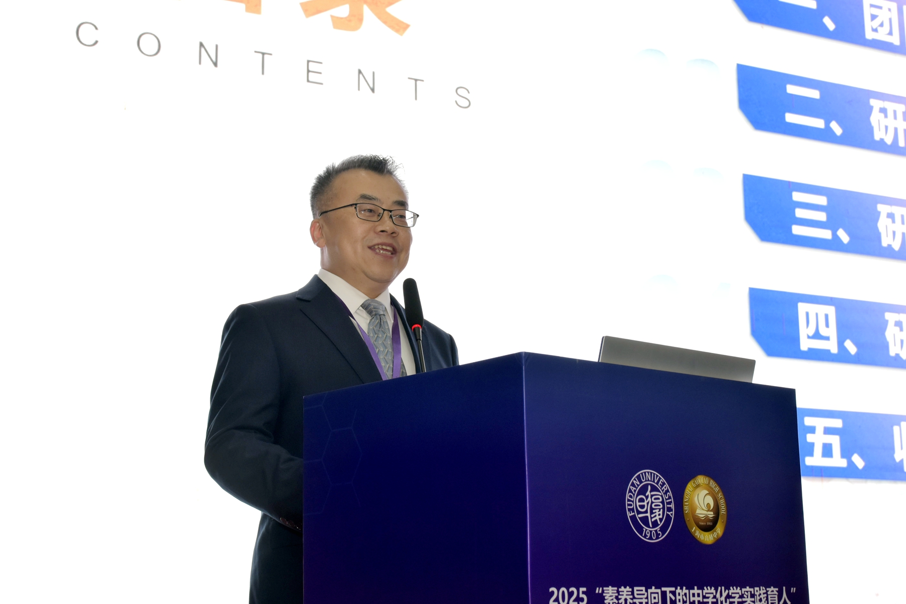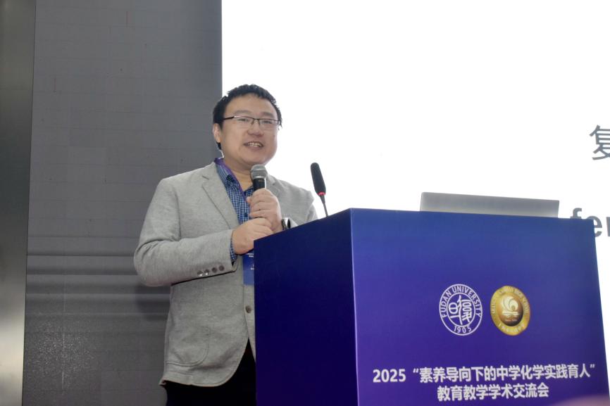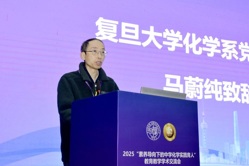 复旦大学化学系党委书记马蔚纯在致辞中指出,本次交流会是深化“双新”课程改革、推动中学化学教育教学质量提升的重要举措。他强调,化学作为一门以实验为基础的学科,实践是其核心特征与显著优势,应当依托实践教学培育学生的核心素养。