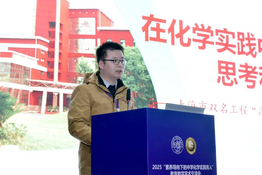 学术交流环节,来自高校与中学的专家学者,紧扣“素养导向下的中学化学实践育人”主题,从不同视角展开深入研讨。复旦大学化学系冯玮教授作了题为“稀土发光纳米材料的生物医学应用进展”的学科前沿报告;上海财经大学附属北郊高级中学徐凯里老师、上海市松江一中杨健老师分别以“破解抽象之谜,化学概念教学的困境与突破”和“在化学实践中发展思维的思考和探索”为题进行主题发言。上海市浦东教育发展研究院周玉枝、上海交通大学附属中学张珂、上海市高桥中学陈勇依次围绕“中学化学教育智能体的开发与应用实践”“境脉教学场:构建以学习者为中心的化学课堂”和“文化自信,化学育人”分享了研究成果;北京师范大学化学学院魏锐教授作了题为“促进创新人才培养的中学化学教学”的主旨报告。