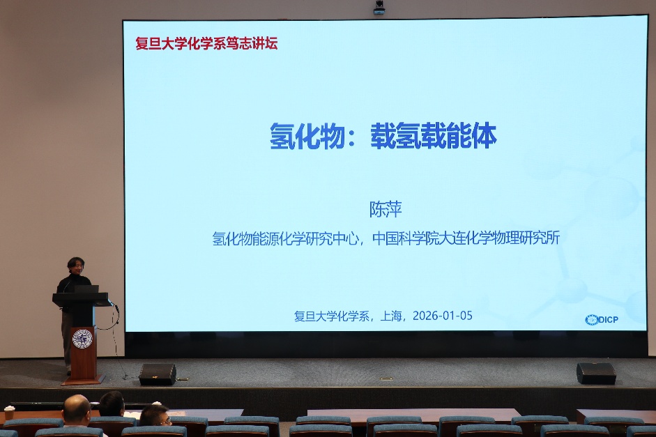 1月5日下午,化学系“笃志讲坛”第三十五讲在江湾校区化学楼周林林报告厅顺利举行。中国科学院大连化学物理研究所陈萍研究员应邀作题为“氢化物:载氢载能体”的学术报告。化学系系主任周鸣飞教授主持了本次报告会。