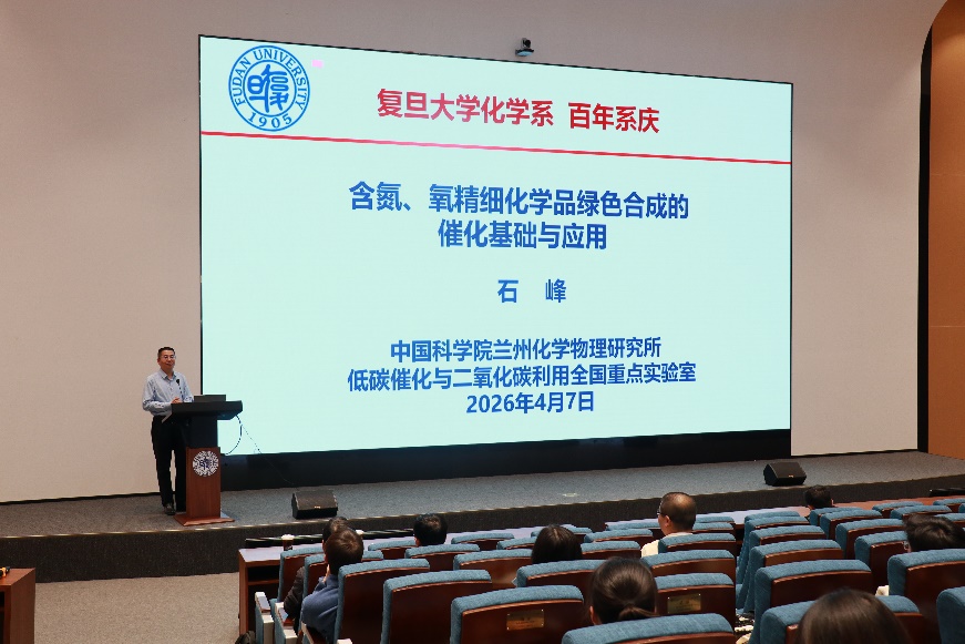 4月7日下午,“笃志讲坛”第三十八讲在江湾校区化学楼周林林报告厅顺利举行。中国科学院兰州化学物理研究所石峰研究员应邀作题为“含氮、氧精细化学品绿色合成的催化基础与应用”的学术报告。报告会由化学系主任周鸣飞教授主持。