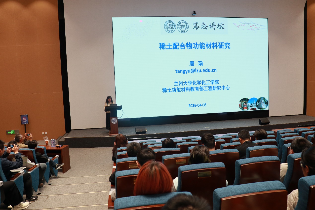 4月8日下午,“笃志讲坛”第三十九讲在江湾校区化学楼周林林报告厅顺利举行。兰州大学唐瑜教授应邀作题为“稀土配合物功能材料研究”的学术报告。化学系主任周鸣飞教授主持本次报告会。