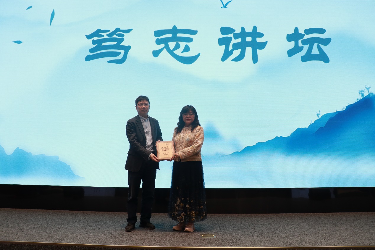 “笃志讲坛”设立于2019年,旨在邀请化学研究领域的杰出科学家,分享对科研工作的思考、认识和体会,奉献卓越智慧,帮助化学系师生拓展科研视野,提升科研水平。化学系主任周鸣飞教授代表“笃志讲坛”组委会向唐瑜教授颁发了“笃志讲坛”奖牌。“笃志讲坛”由化学系84级校友、河南银泰投资董事长谭瑞清先生赞助支持。